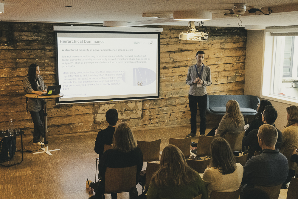 Johan and Sophie-Marie also presented their work on the role of non-harmonic relationships in low-carbon transitions, challenging the prevailing emphasis on harmonious interactions within transition research. They argue that conflict and competition are significant in shaping the direction and pace of the transition towards a low-carbon society, using the electrification of the Swedish road freight sector as a case study. Their findings suggest that acknowledging these dynamic relationships is crucial for policymakers and managers in making strategic decisions for sustainable transitions. The paper is a work in progress.